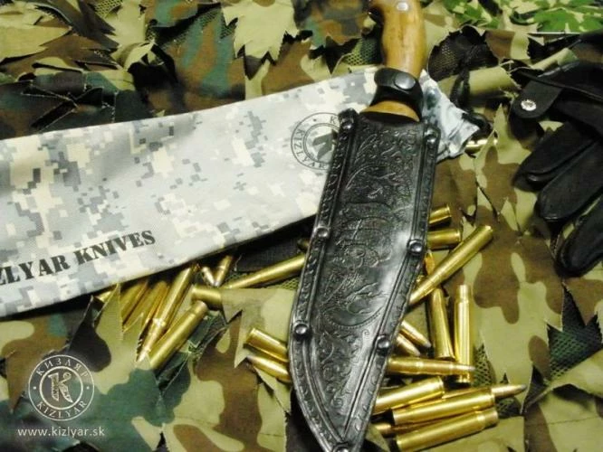 Kizlyar knives are made by company Kizlyar. This company is entitled after Kizlyar town where it resides. The town is located in the Republic of Dagestan, which is situated between Caspian sea and the central part of Caucasia. The Republic of Dagestan has always been known for its art – an art of metal and wood processing, engraving into bones and stone, carpet production, jewel-making and weapon production.